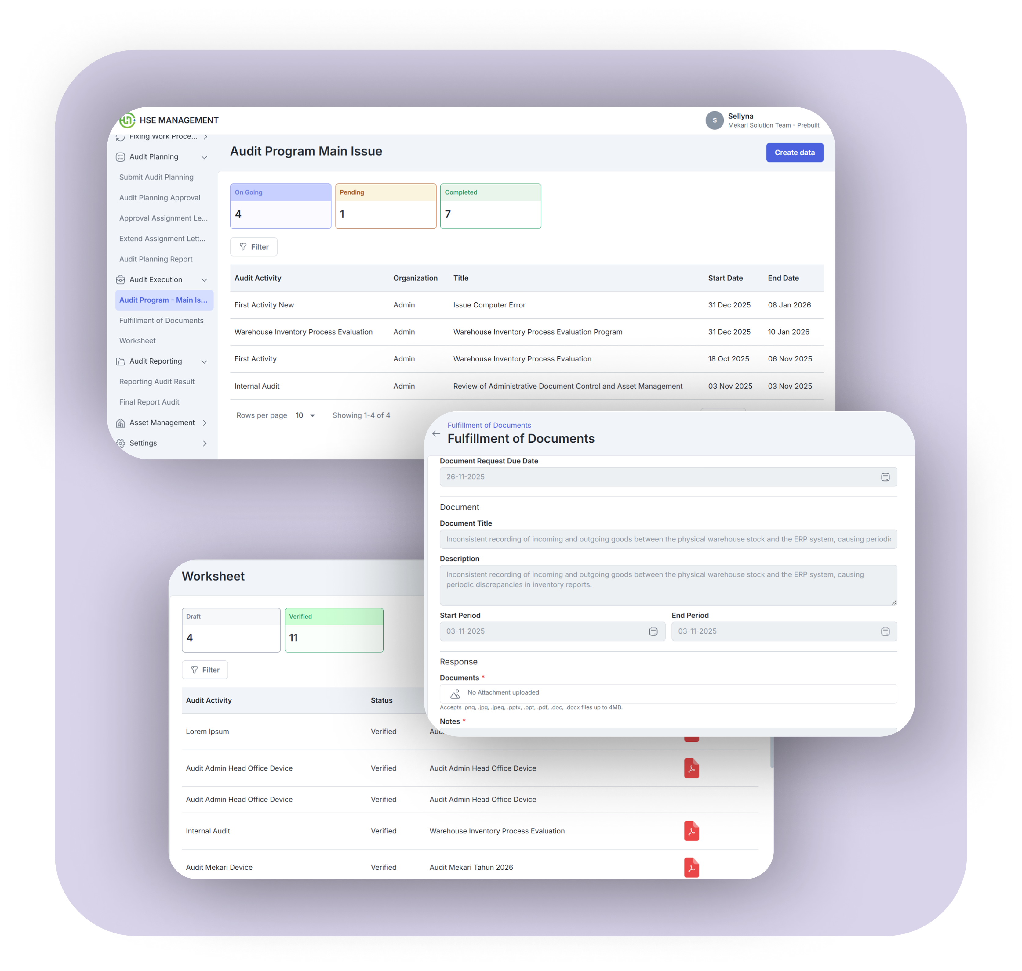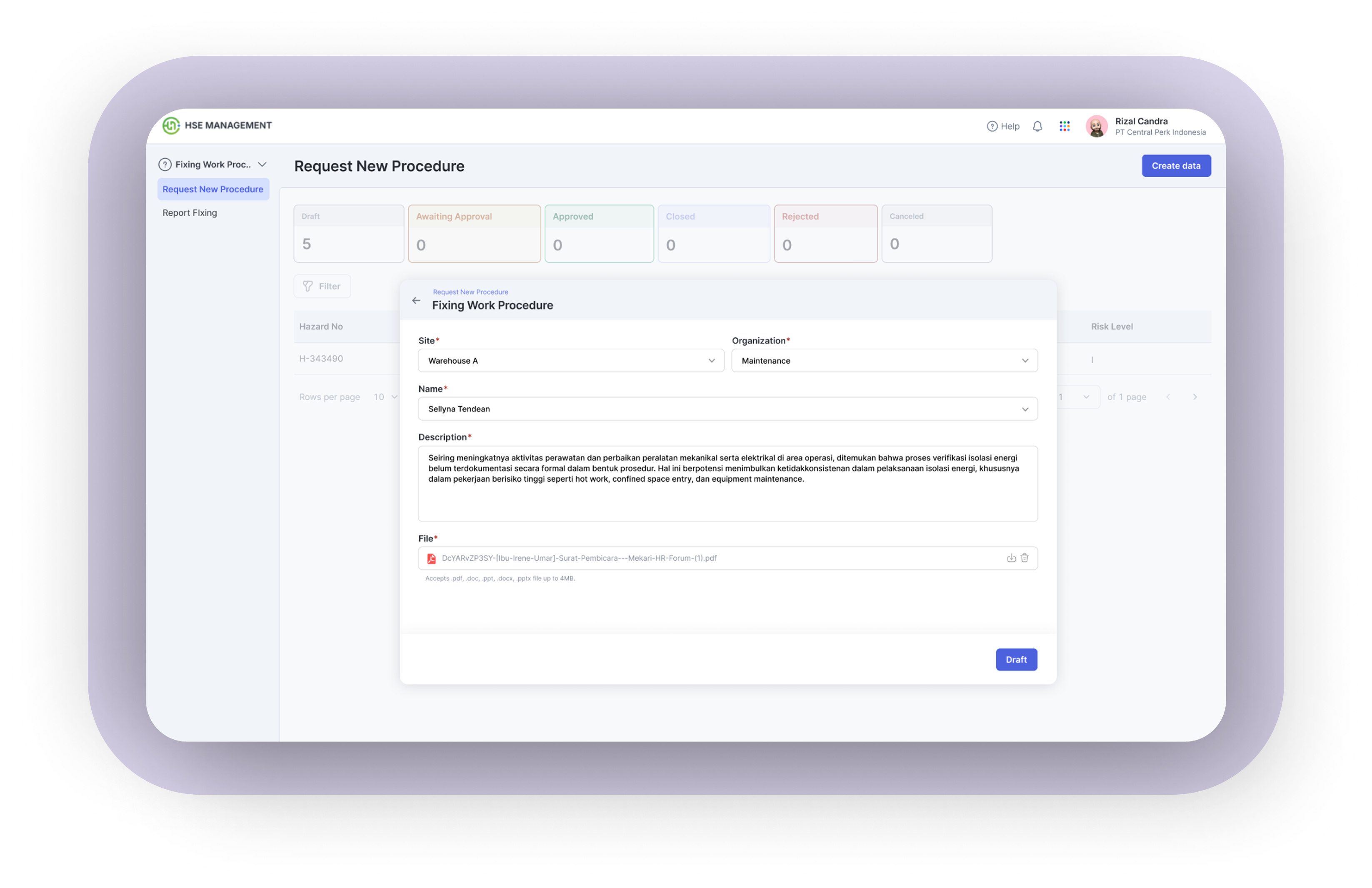 The Health, Safety, and Environment (HSE) System is a centralized solution designed to help organizations manage workplace safety, environmental compliance, and risk controls in a structured and auditable manner. It enables consistent implementation of HSE standards, improves incident visibility, and supports regulatory compliance through standardized workflows and reporting.